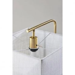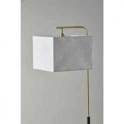 With a clean, minimal design and a simple color palette, the 60 in. Flora floor lamp exudes modern style. It features a black metal rectangular base measuring 11 in. x 8.5 in. The black finish continues up the stem before transitioning to an antique brass finish leading to the square, off-white textured fabric shade that softly distills the light. The 100-Watt bulb (not included) is operated by a 3-way rotary switch located on the socket, allowing you to easily adjust the lighting level between low, medium, high and off when using a 3 way bulb. When using a regular bulb, the rotary switch turns the lamp on or off. The Flora floor lamp is also available with a black and brushed steel finish and light taupe textured fabric shade.