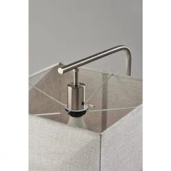 With a clean, minimal design and a simple color palette, the 60 in. Flora floor lamp exudes modern style. It features a black metal rectangular base measuring 11 in. x 8.5 in. The black finish continues up the stem before transitioning to a brushed steel finish leading to the square, light taupe textured fabric shade that softly distills the light. The 100-Watt bulb (not included) is operated by a 3-way rotary switch located on the socket, allowing you to easily adjust the lighting level between low, medium, high and off when using a 3 way bulb. When using a regular bulb, the rotary switch turns the lamp on or off. The Flora floor lamp is also available with a black and antique brass finish and off-white textured fabric shade.