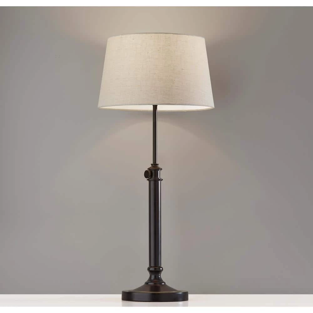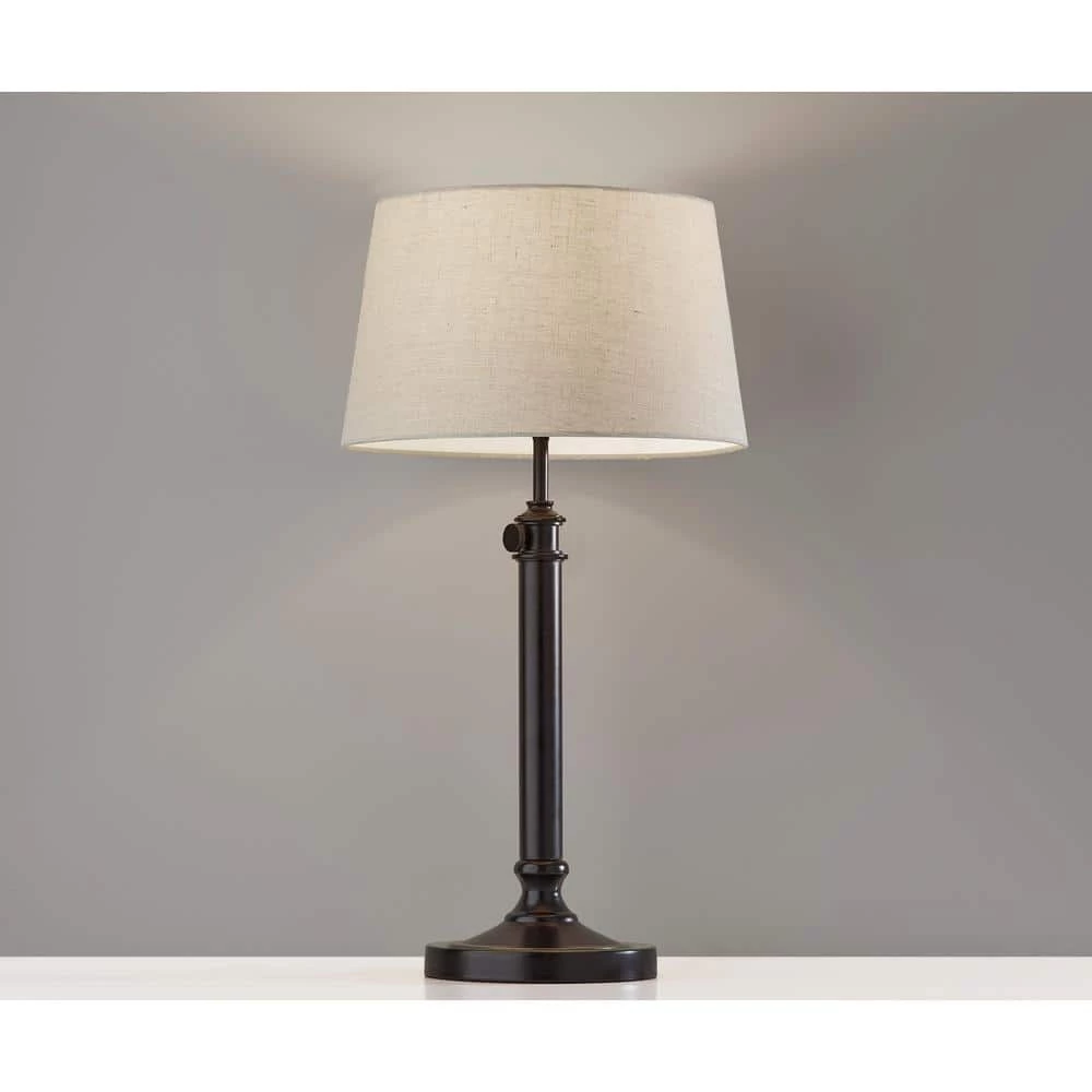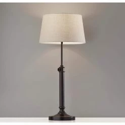 Transform your space with this sturdy and stylish pair of table lamps. At 28 in. H, with a thick, column style base, these lamps are s stately presence in any room. A decorative black base is paired with a classic modified drum shaped natural textured fabric shade creating a versatile, upscale style that fits into a variety of decor. Turn the lamps on and off with a convenient switch on the socket. All Adesso lighting product is either UL or ETL listed, meaning that it has been tested and approved to meet the government-regulated safety standards for the USA. Bulb is not included.