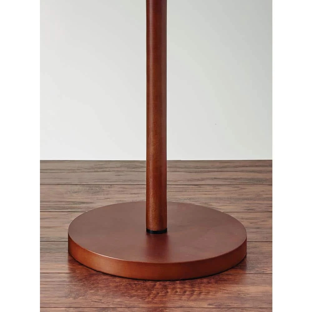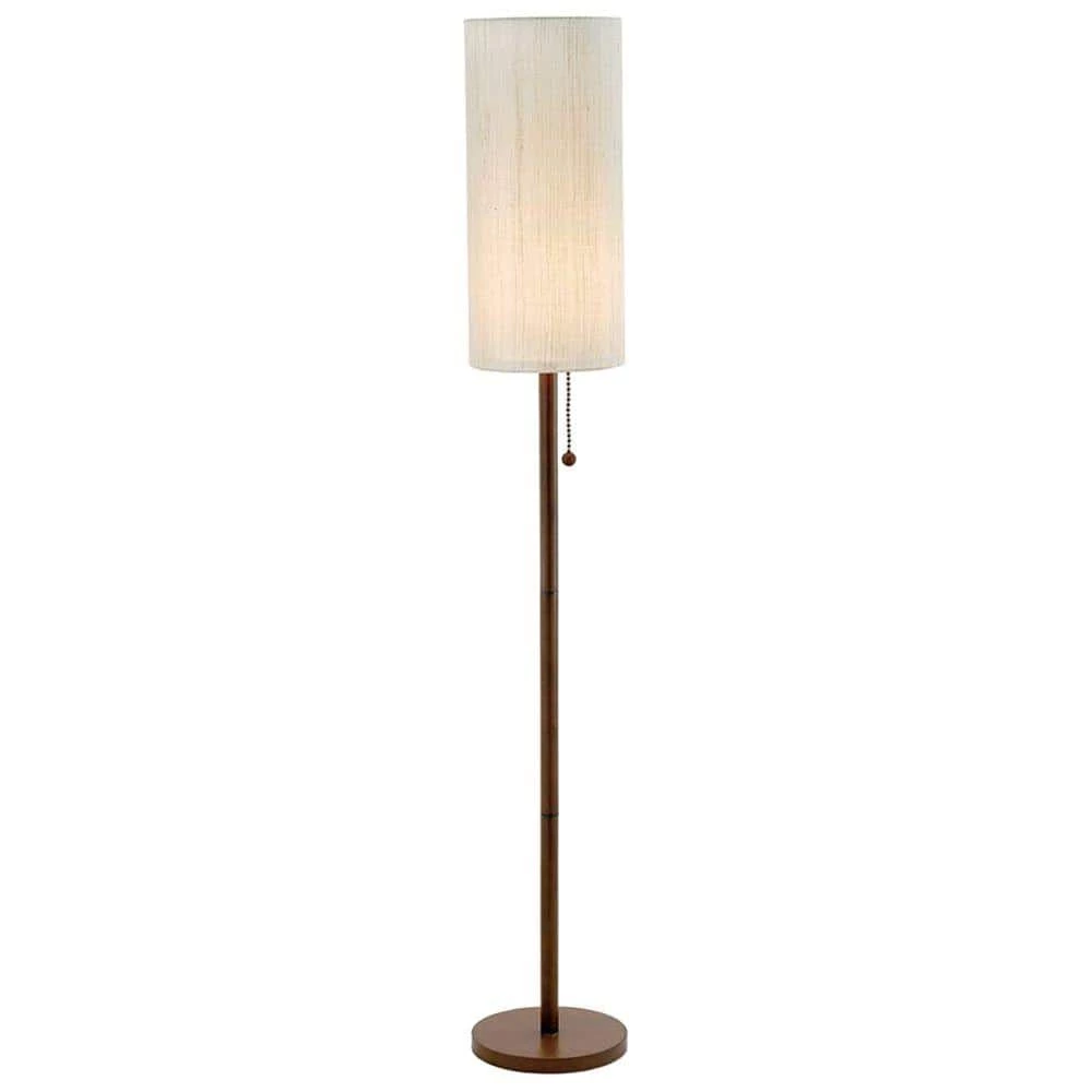 The Adesso Hamptons 65 in. Walnut Floor Lamp blends modern simplicity and elegance with a walnut finish and a textured beige linen-fabric shade that emits a warm light. With a nod to Scandinavian and mid-century modern aesthetics, the Hamptons floor lamp pairs a wooden pole with a walnut finish and a tall, double cylindrical shade. A wood ball on the pull-chain completes the statement. With its warmer fashion elements, this floor lamp makes a great addition to the den or more casual interiors.