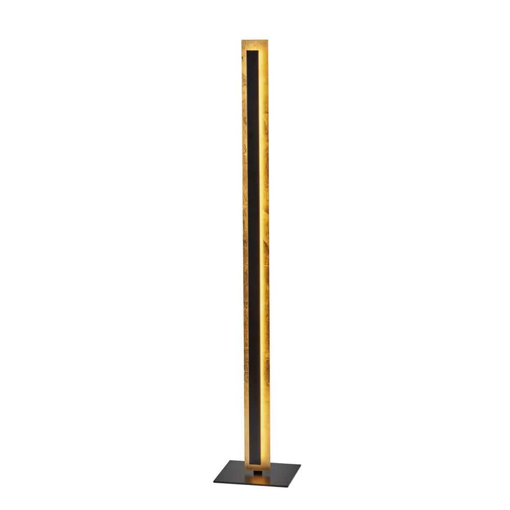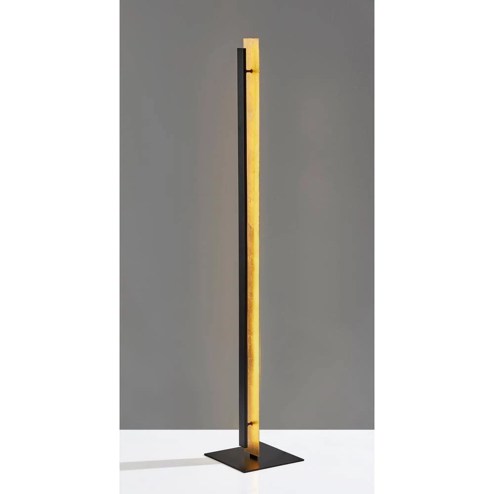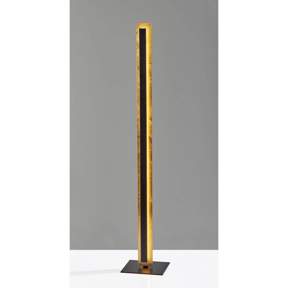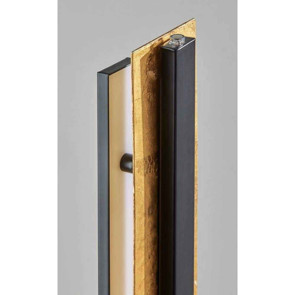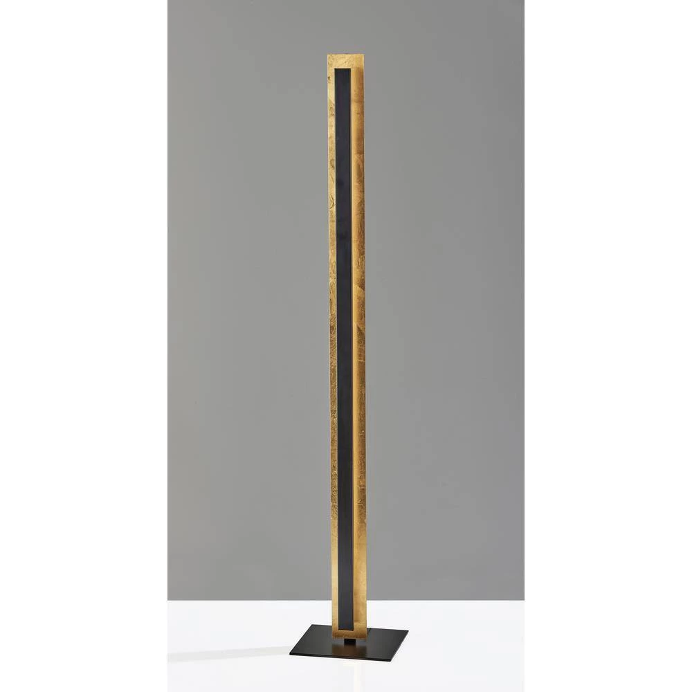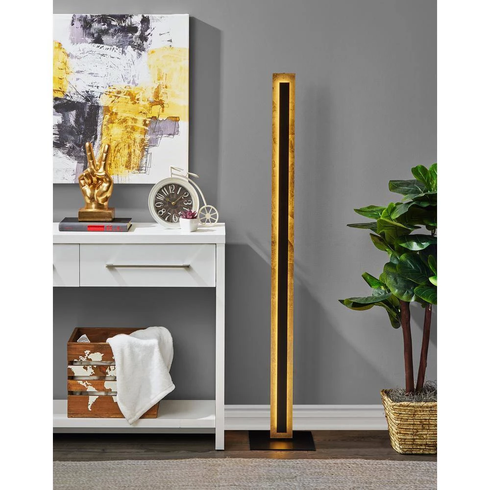 Bring a warm artistic glow to your space with the Hayden LED floor lamp. Its rectangular architecture along with a black metal and distinctive gold foil finish create a striking and dramatic look. The 52 in. tall and 9 in. W lamp features a black metal rectangular body with 2 integrated 15-Watt LED lights. Softly distilling the 1,800 Lumens is a large rectangular gold foil diffuser that offsets the black metal finish. Operated by a 3-step touch dimmer switch discretely positioned on the back, the brightness can easily be set to high, medium, low or off to suit your needs. The lamp rests upon a low-profile, 9 square metal base with black finish and features a 5 ft. black cord. Complete your space’s look with the coordinating Hayden table lamp.