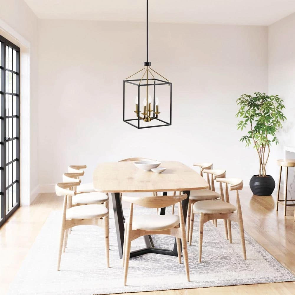 Enhance your entryway kitchen or dining room with the classic styling of this 4-light chandelier. Highlighted by a contemporary metal birdcage design and matte black finish this fixture adds a warm glow to a variety of indoor spaces. The open caged shade exposes the candelabra style bulbs for a classic look perfect for providing ample task lighting.