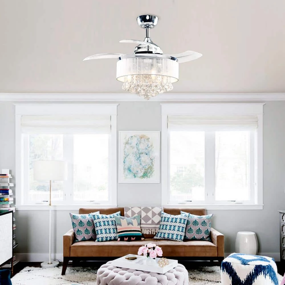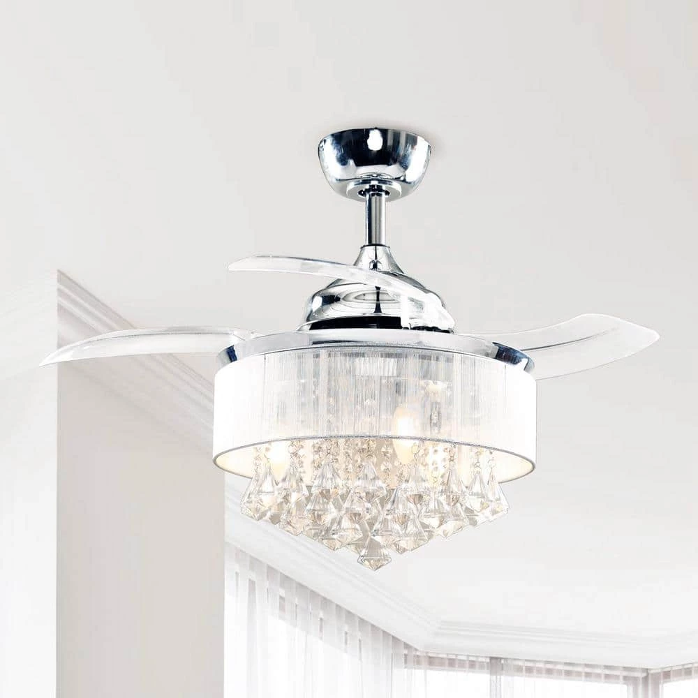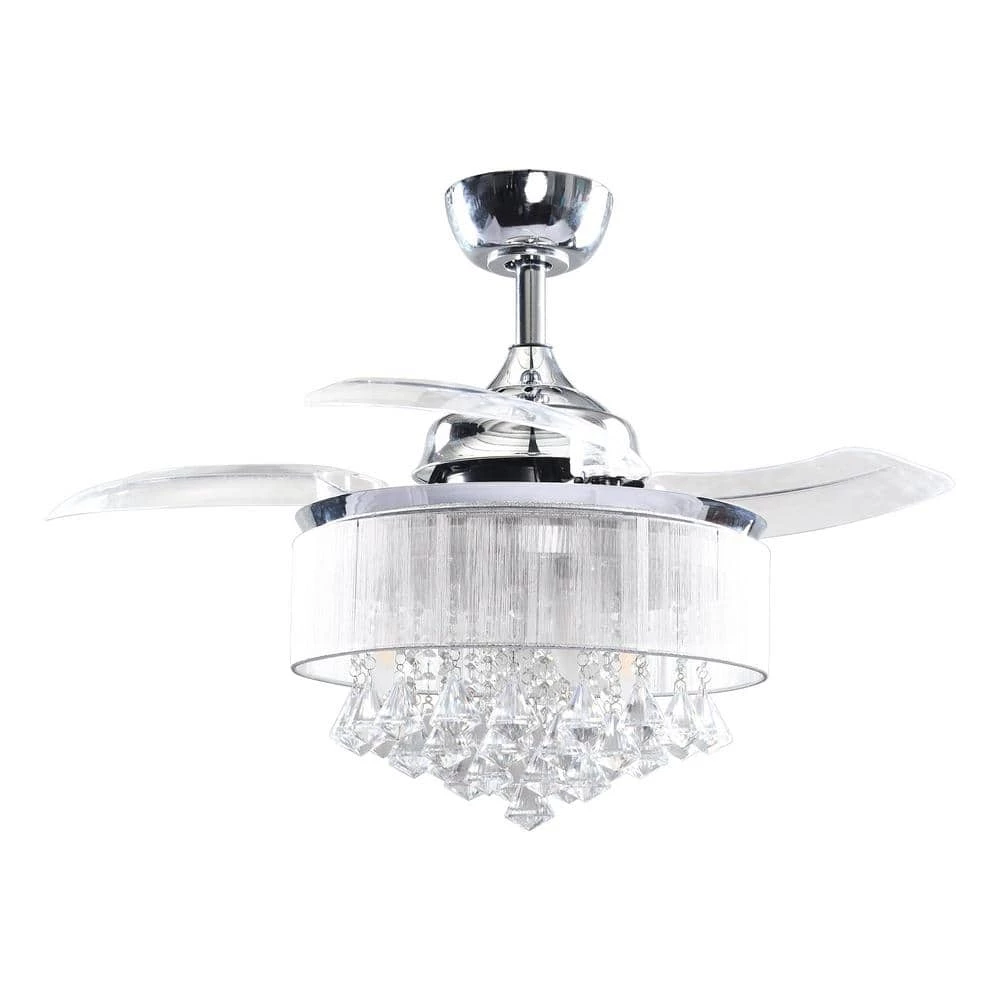 You will be pleasantly surprised this fabulous, elegant and chic Parrot Uncle crystal chandelier ceiling fan to your home. The chrome chandelier light with decorative crystals provides bright illumination, making this fancy ceiling fan both functional and stylish. Features the retractable blades, this charming ceiling fan is full of enchanting crystal accents that sparkle when illuminated.