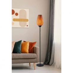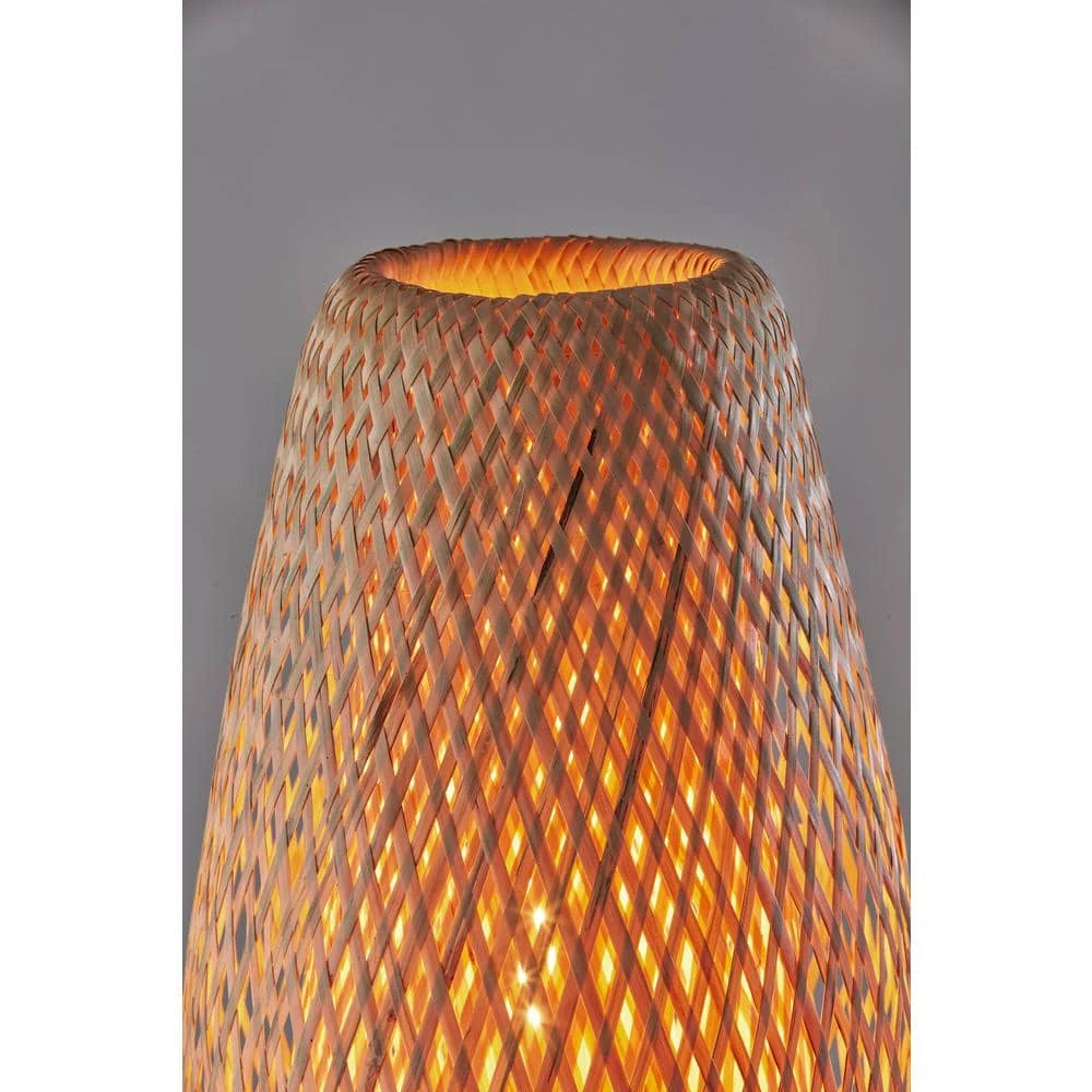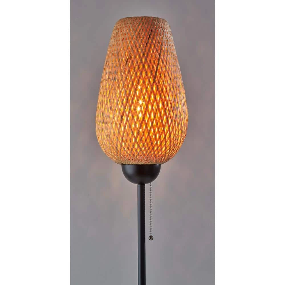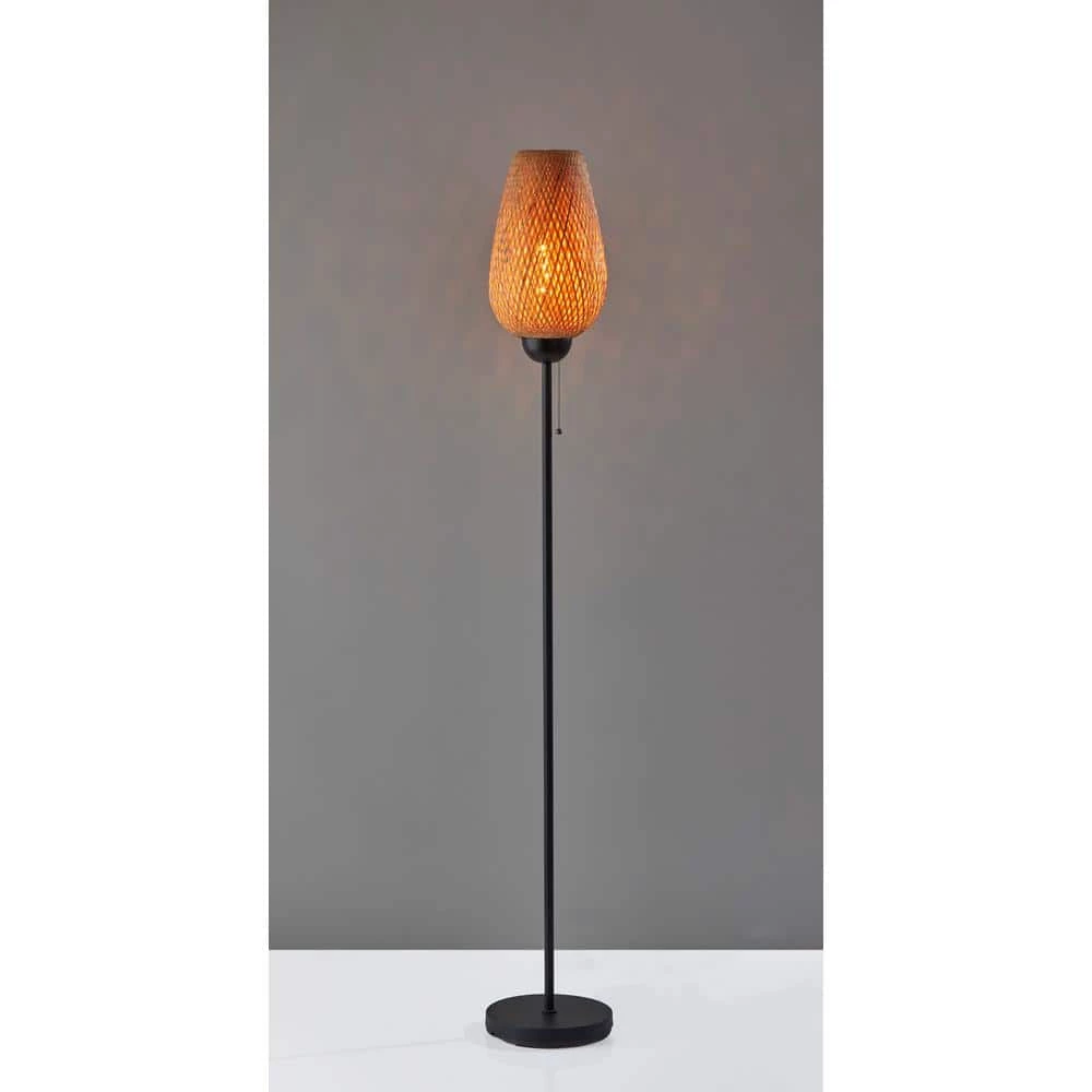 Bring beach-bungalow ambiance and a warm glow to your home with the 68.25 in. tall Hugo floor lamp. It features a 10 in. Dia round metal base in black finish supporting the matching tall and narrow tube-shaped stem. With an open-weave natural bamboo tulip-shaped shade distilling the light of a 60-Watt bulb, this lamp creates a relaxed and natural focal point to any room. Operated by a pull chain located on the base of the shade to easily turn it on or off, the floor lamp also features a 6 ft. black cord. Complete your space’s look with the coordinating Hugo table lantern and pendant lighting.