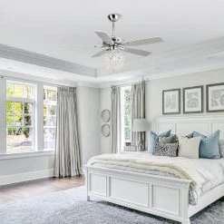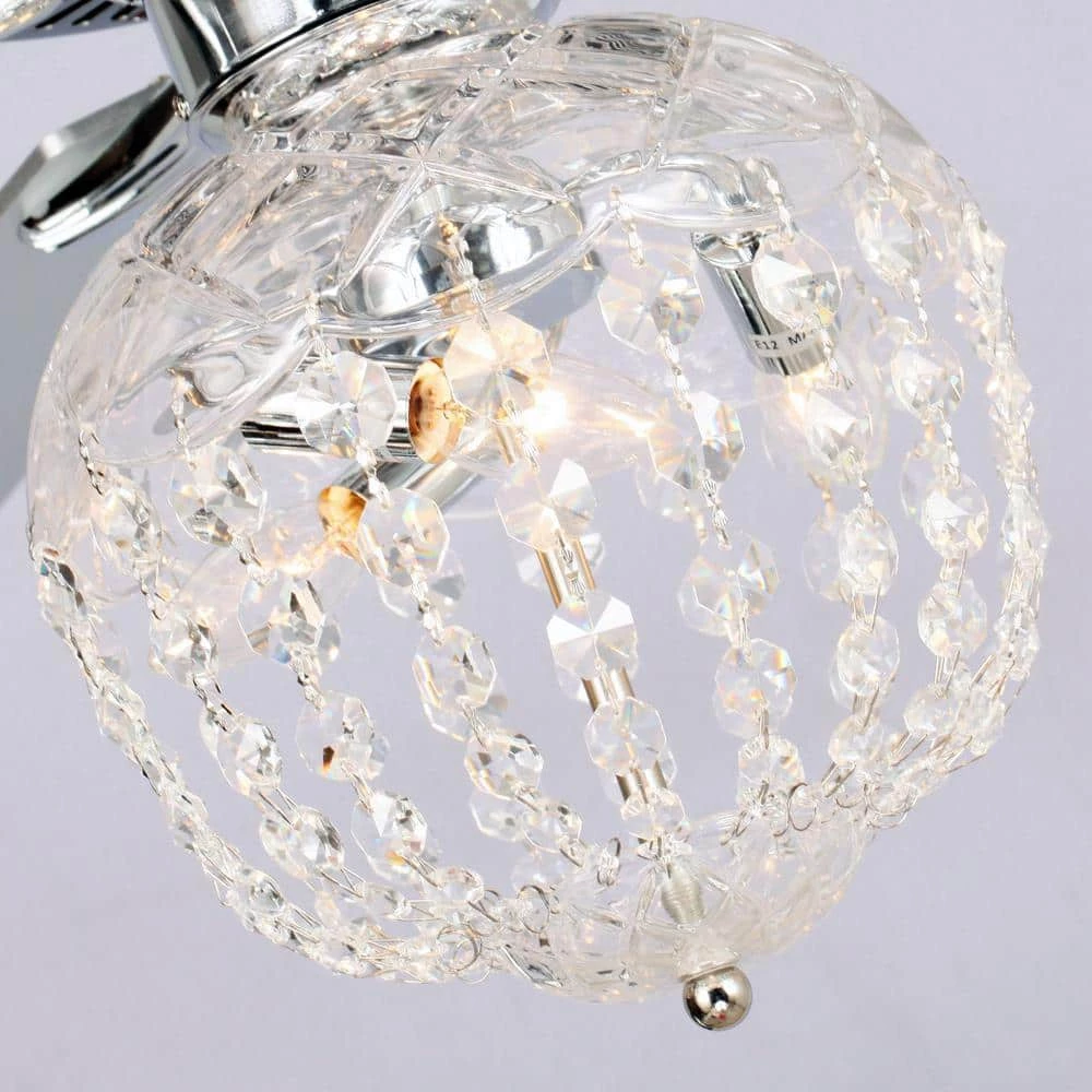 This ceiling fans is the most cost-efficient option for bringing the temperature down and moving stale air out of your room. This lighted chandelier ceiling fan is the perfect solution for your cooling and lighting needs. A full crystal shade combines to fill your home with a grandeur rarely found in such a functional package, definitely will become a great conversation piece of your house.