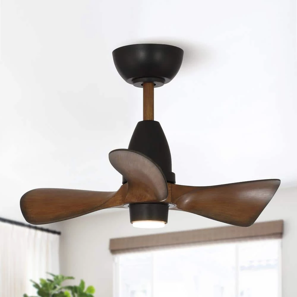 The 28 in. ceiling fan is manufactured with the latest technology. With 3 exceptionally wooden finish blades, black and wooden finish lends itself to a range of living spaces, it includes a handheld fully functional remote system offering 5 speeds, reverse direction and timer. The light source is an integrated 11-Watt LED that is energy-efficient and long-lasting.