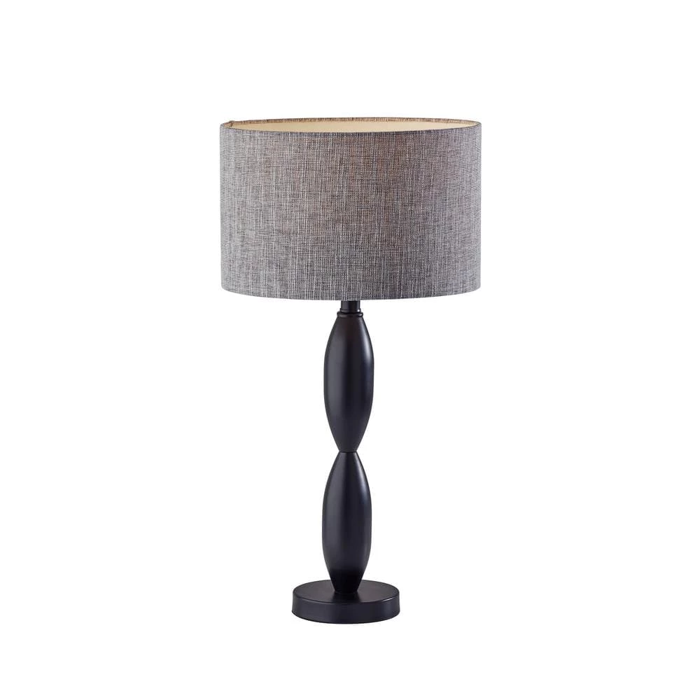 The classic candlestick shape is given a contemporary spin in the design of the Lance table lamp. The 25 in. tall lamp features a black metal finish on the stem and matching round base, which is perfectly complemented by the dark grey and white textured shade for a distinctive, contemporary look. The short drum shade is 8 in. H and 13 in. Dia and softly distills light from a 100-Watt bulb (not included). Operated by a rotary socket switch to easily turn it on or off, the Lance table lamp also includes a 5 ft. black cord. This lamp is also available in a brushed steel finish for a lighter look.