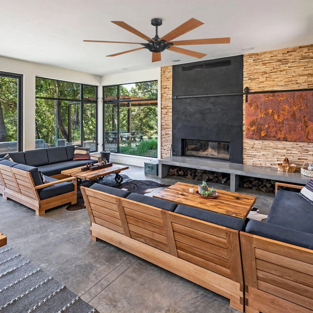 Keep your space cool with this 72 in. industrial ceiling fan, which features a matte black finish motor and seven reversible plywood blades design that will complement most spaces. Hang it in a living area or family room to keep things cool in the summer time and even reverse the motor to keep it warm in the winter. The large ceiling fan is energy-efficient and perfect for both indoor spaces and covered outdoor spaces such as porches or patios.