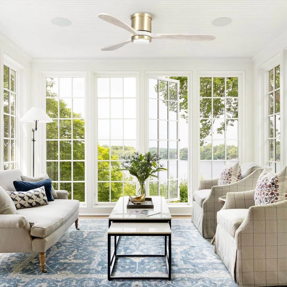 - Modern indoor ceiling fan intended for large rooms over 18 ft. x18 ft.