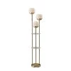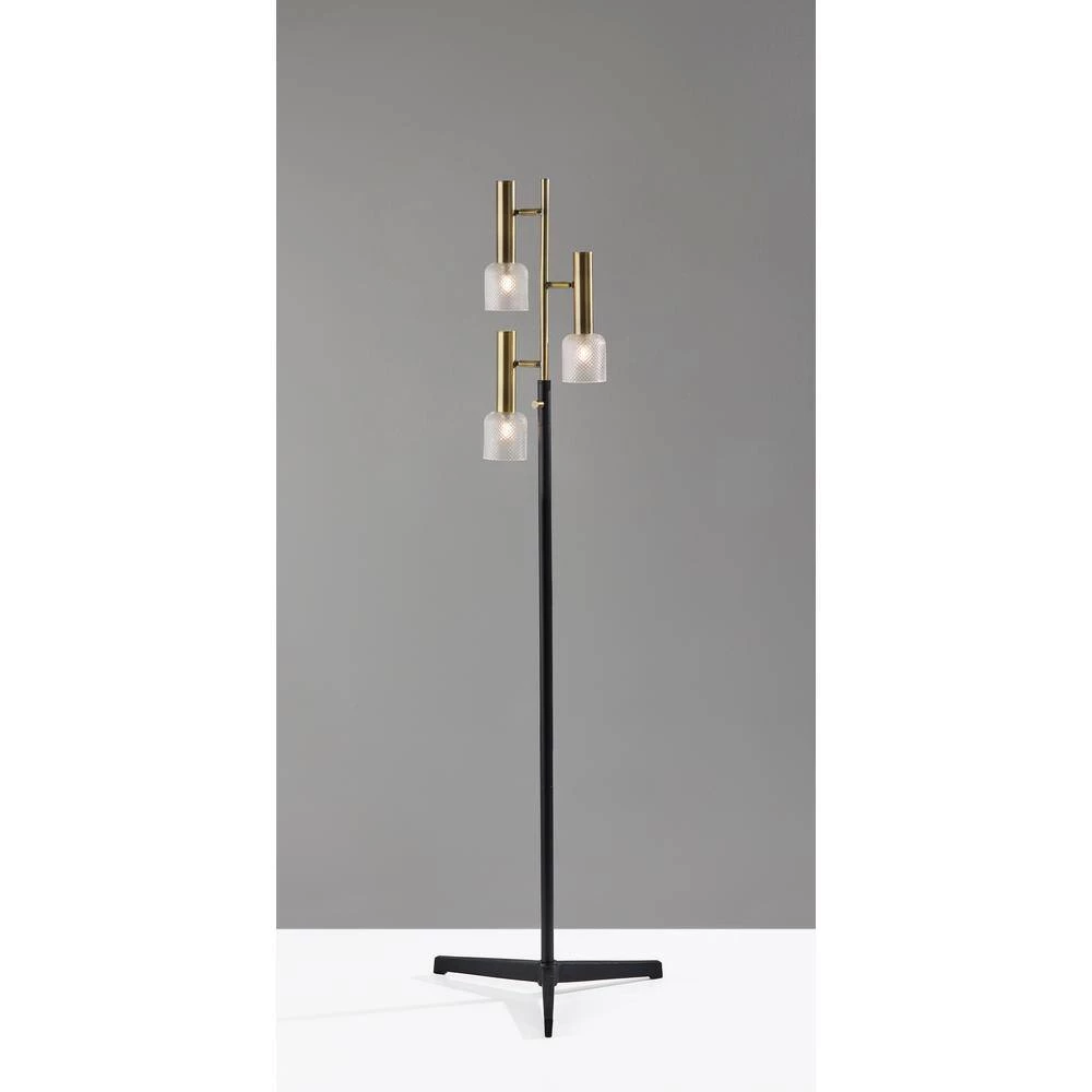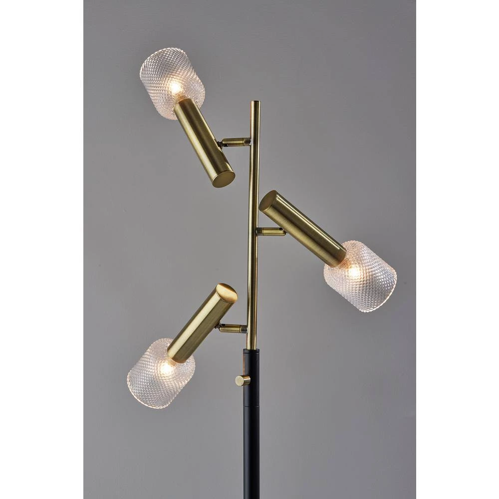 Brighten your space in sleek, contemporary style with the Melvin LED floor lamp. Featuring an 18 in. Dia tripod base in black cast iron metal, an antique brass body with clean lines and 3 clear textured glass shades, this 62.5 in. tall lamp elevates the look of any room. Just as versatile as it is attractive, the glass shades swivel 360° for optimum adjustability while the rotary dimmer switch gives you the ability to set your desired level of brightness. From a soft night light to a bright reading lamp, the Melvin lamp can do it all. This floor lamp is powered by a 5 ft. L clear cord and includes 3-Watt replaceable dimmable G9 LED bulbs. Pair it with the Melvin LED table lamp to complete your space’s decor.