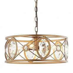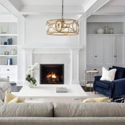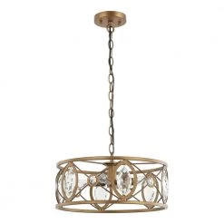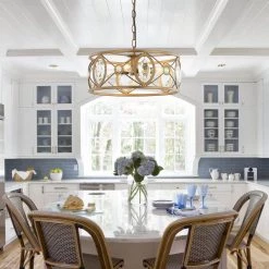 Perfectly sized for a kitchen island, small dining table, entry or hallway, the traditional silhouette of our pendant chandelier is updated with a brass gold finish. The open metal frame contains 4 candles with LED bulbs that provide warm light for a vintage touch. with its adjustable chain, this versatile lantern is ideal for a modern farmhouse kitchen, rustic entry or traditional foyer.