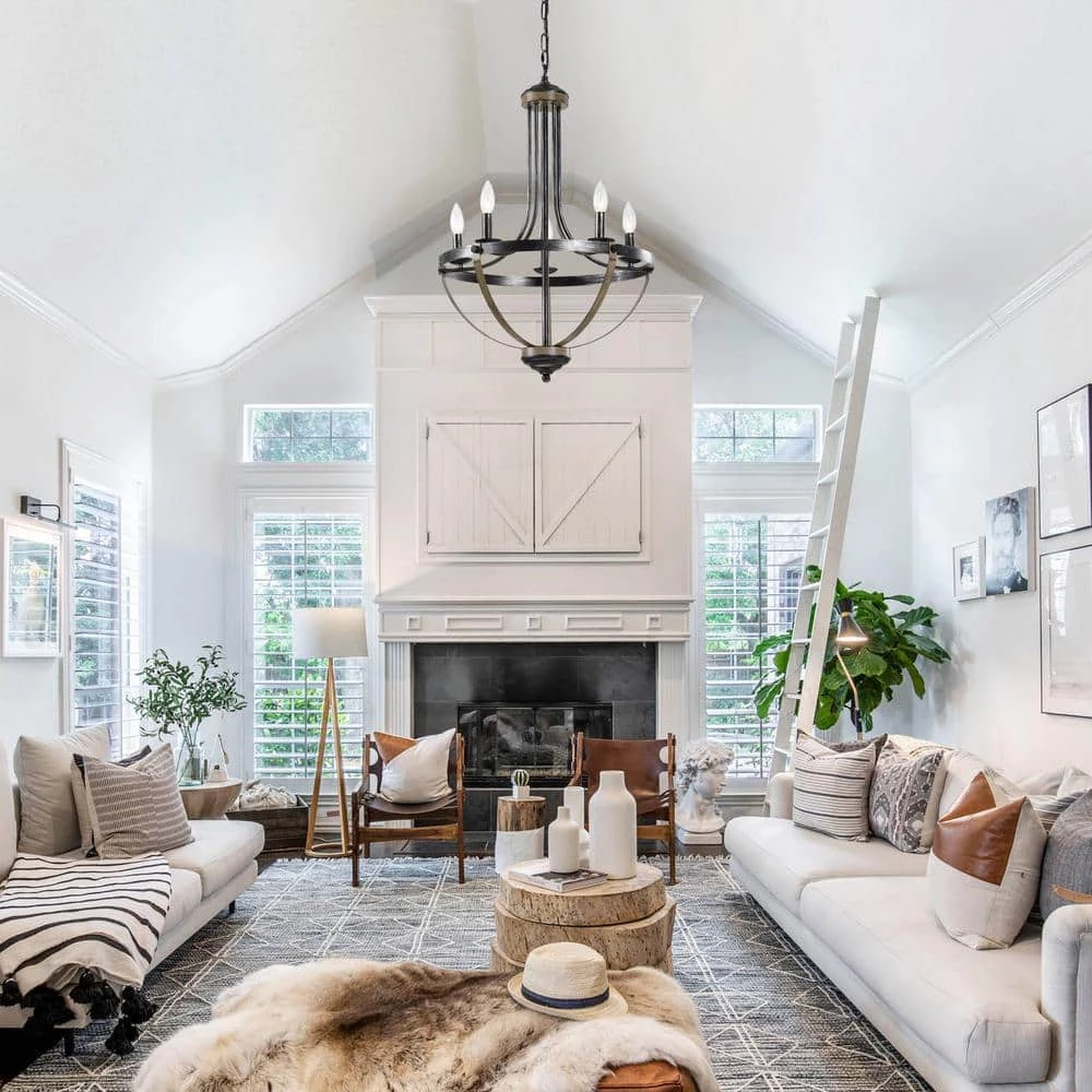 This hanging ceiling chandelier is made of real wood and metal, black distressed finish lights fixtures, perfect mix of traditional, modern farmhouse and rustic. This chandelier hardly no assembly, this chandelier lighting is perfect for a farmhouse dining room, kitchen table, pool table, living room, bedrooms, bathrooms, foyer, entryway, hallway. It’s so easy to decorate for the seasons.