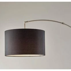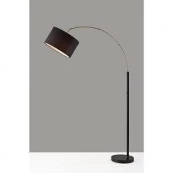 Add an upscale feel to your space with the 76 in. tall Preston Arc floor lamp that effortlessly complements many decor styles such as urban, industrial or mid-century modern. The arcing design of this floor lamp makes it the perfect light source for reading in a recliner or working at a desk, while its slender design makes it easy to position near love seats, couches, armchairs or side tables. for even greater versatility, the lamp’s head features an adjustable joint, allowing you to direct the 100-Watt bulb (not included) wherever it’s needed. The 12.5 in. Dia round metal base provides stability, while the clean lines in black finish add a modern, minimalist touch. The black finish continues through the pole, while the brushed steel finish of the arcing stem is complemented by brushed steel accents at the base and on the rotary switch for a seamless look. Topping off the lamp is a short drum shade that is as easy on the environment as it is on the eyes. The attractive black fabric shade is made of 100% recycled post-consumer polyester. Operated by a rotary switch located on the stem to easily turn it on or off, the lamp also includes a 5 ft. clear cord. The Preston Arc floor lamp is also available with a white and brushed steel finish and coordinating white shade or with a dark bronze finish and coordinating light brown textured shade.
