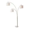 Influenced by vintage and mid-century traditions, the Quinn floor lamp combines the texture of natural linen and the sleek warmth of a walnut finish on the crisscross base for an urban statement. The brown fabric cord adds to the vintage appeal.