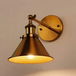 This brass wall sconce bends industrious and modern contemporary style. A blend of simple design and clean lines add to the minimalistic charm of this fixture. Add glamour to your home with this Schulte Industrial 1-Light Armed Sconce with cone shade, which can produce a beauty effect.