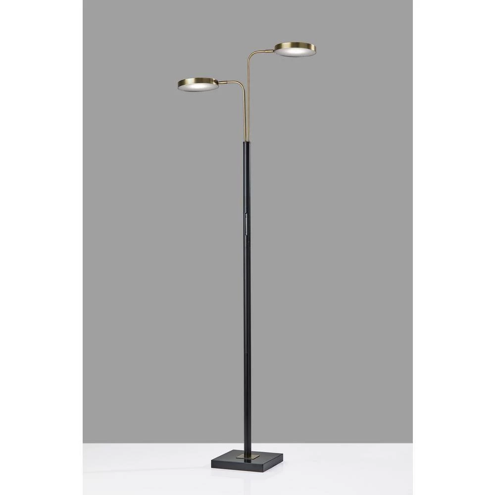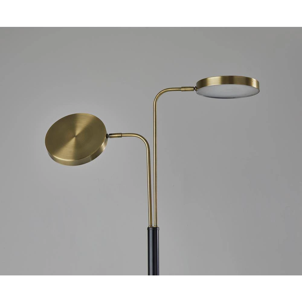 The Rowan LED Floor Lamp with smart switch is high powered, high-tech and high functioning with a mid-century modern look that you won’t find anywhere else. Complete control of the light intensity and color allows you to customize the light to your needs at any time of the day. Whether you are working, reading or relaxing, the 5-light color temperature modes provide you with various options to suit your environment and mood. The color of the light is controlled by a sleek touch switch located on the pole, which is also used to adjust the light intensity offering a full range of brightness options. A matte black finish mixed with antique brass accents elevates the look. 2 adjustable shades allows for 800 Lumens of flicker free, energy efficient LED light to reach any area of the workspace. All Adesso lighting product is either UL or ETL listed, meaning that it has been tested and approved to meet the government-regulated safety standard.