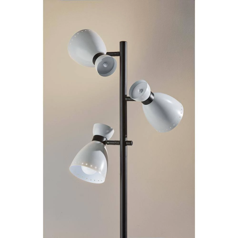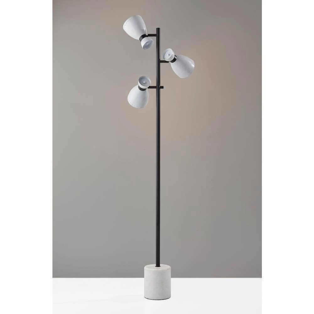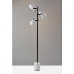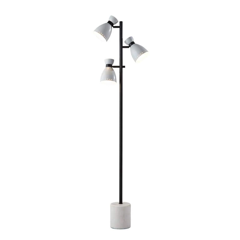 Black and white metal finishes make up the composition of the Sadie Tree Lamp. 3 adjustable shades function with a 360° swivel to focus the light directly where it is needed. A chunky white marble base elevates the look while providing a heavy, stable stance for this upscale, contemporary task lamp. A 4-way rotary switch is located on the pole adjusting the lighting from 1 light on, 2 lights on, all lights on, off . Set this lamp next to your desk or your favorite reading chair to add style and efficience.