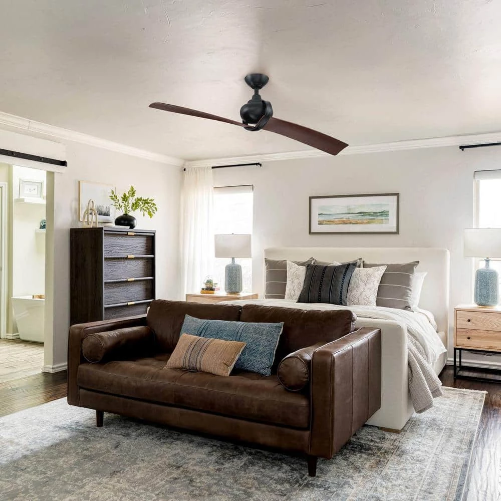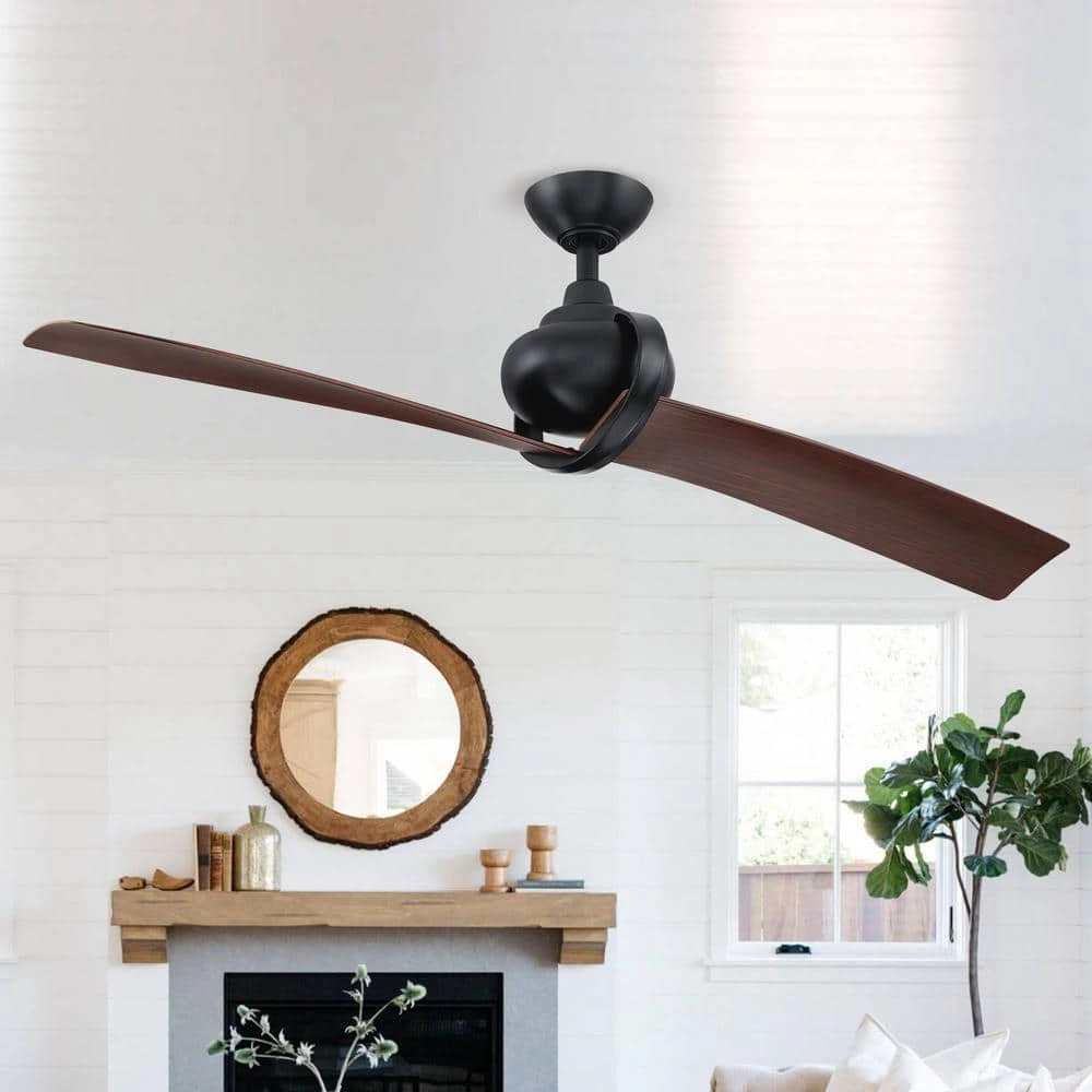 Eye-catching and contemporary, this ceiling fan offers a cooling breeze to any space. Featuring a downrod mounting style that leads to a twisted circular design, which in turn, flows into the fan’s two blades. Finished in matte black with 2 ABS blades and an included full-function 6-speed DC cool touch remote control, very ideal to use in the middle and large room.