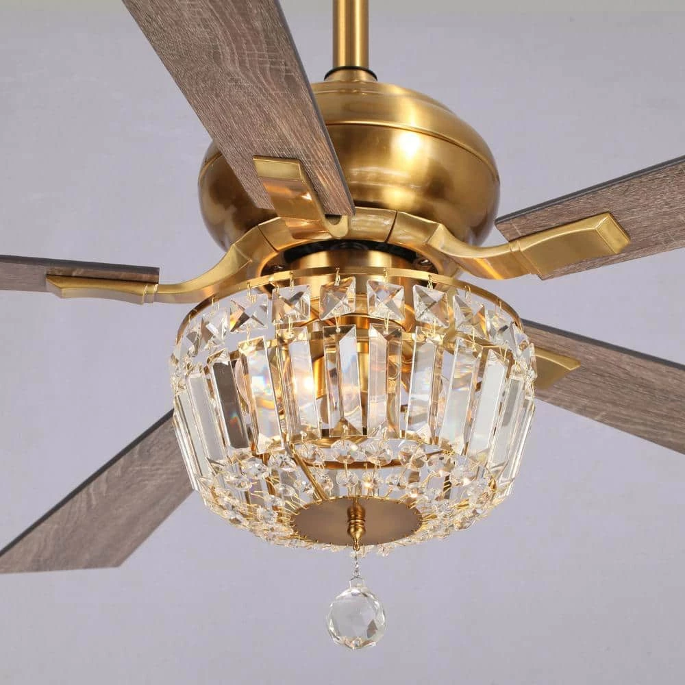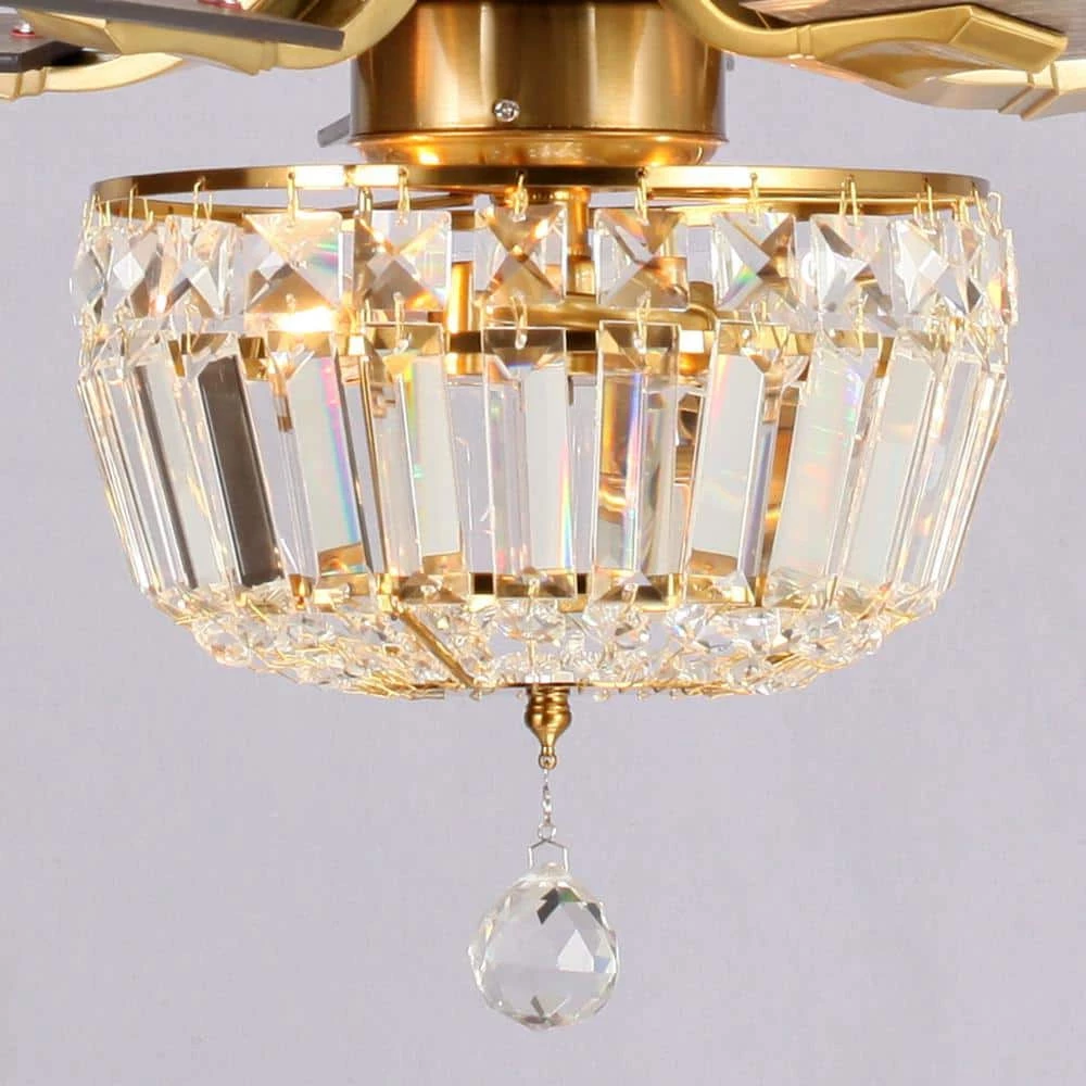 This 52 in. lighted chandelier ceiling fan is the perfect solution for your cooling and lighting needs. A full crystal shade combines the gold finish fixture to fill your home with a grandeur rarely found in such a functional-package, offer you the both elegance and function at the same time. And it also is the most cost-efficient option for bringing the temperature down and moving stale air out of your room.