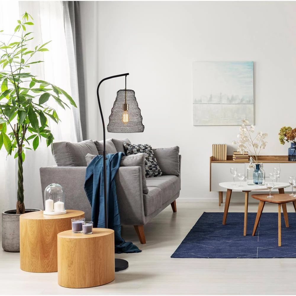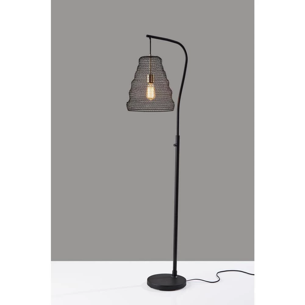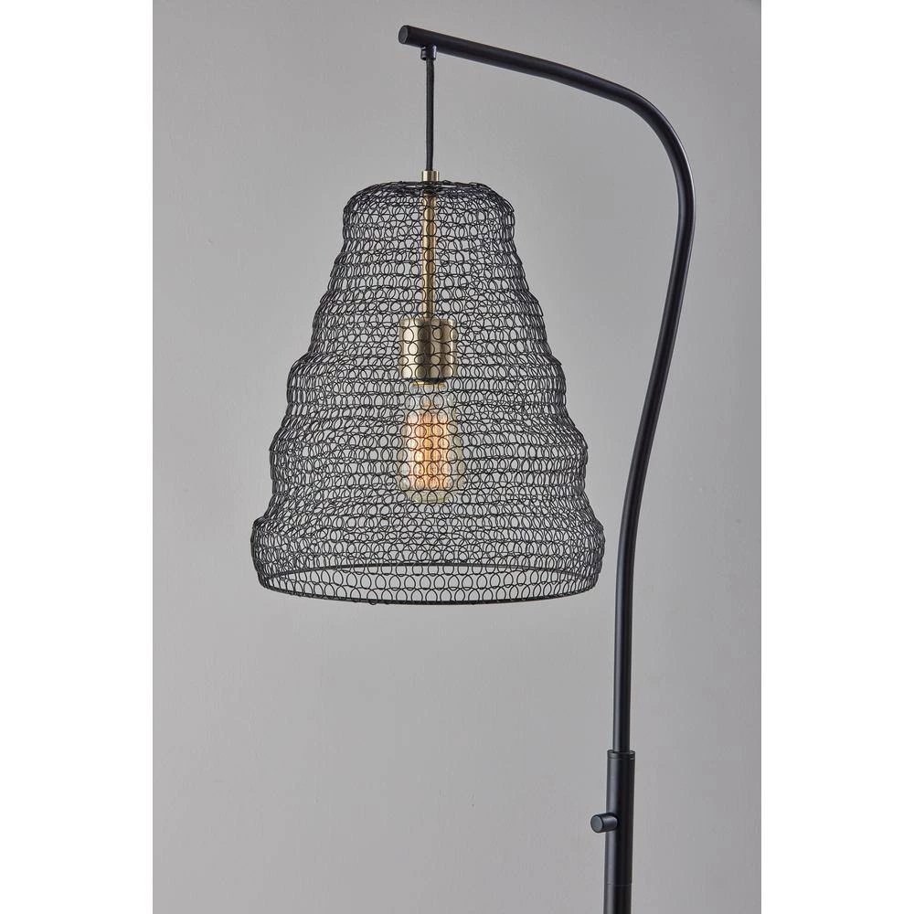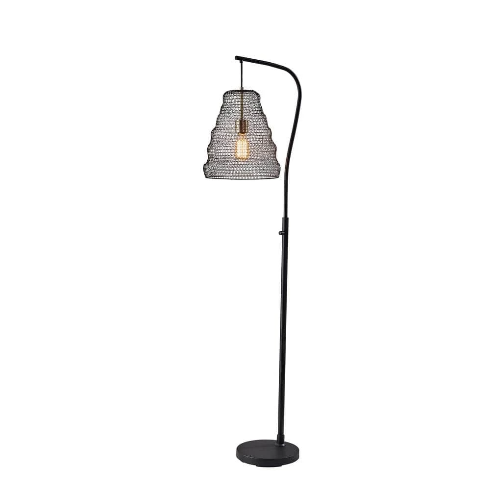 Add a touch of industrial style to your living space with the 63 in. tall Sheridan floor lamp. The large black metal wire mesh shade, measuring 11 in. Dia and 14 in. tall, has a distinctive silhouette that will become the focal point of your decor. with a distinctive mesh pattern, the shade leaves the included 40-Watt vintage Edison bulb and stylish antique brass accents visible. This floor lamp also features a sturdy round black metal base that is 10 in. Dia The lamp easily turns on an off with a rotary switch located on the pole and is powered by a 5 ft. L black fabric-covered cord. Complete your space’s look with the coordinating Sheridan table lamp and pendant lighting.