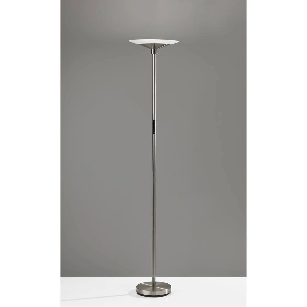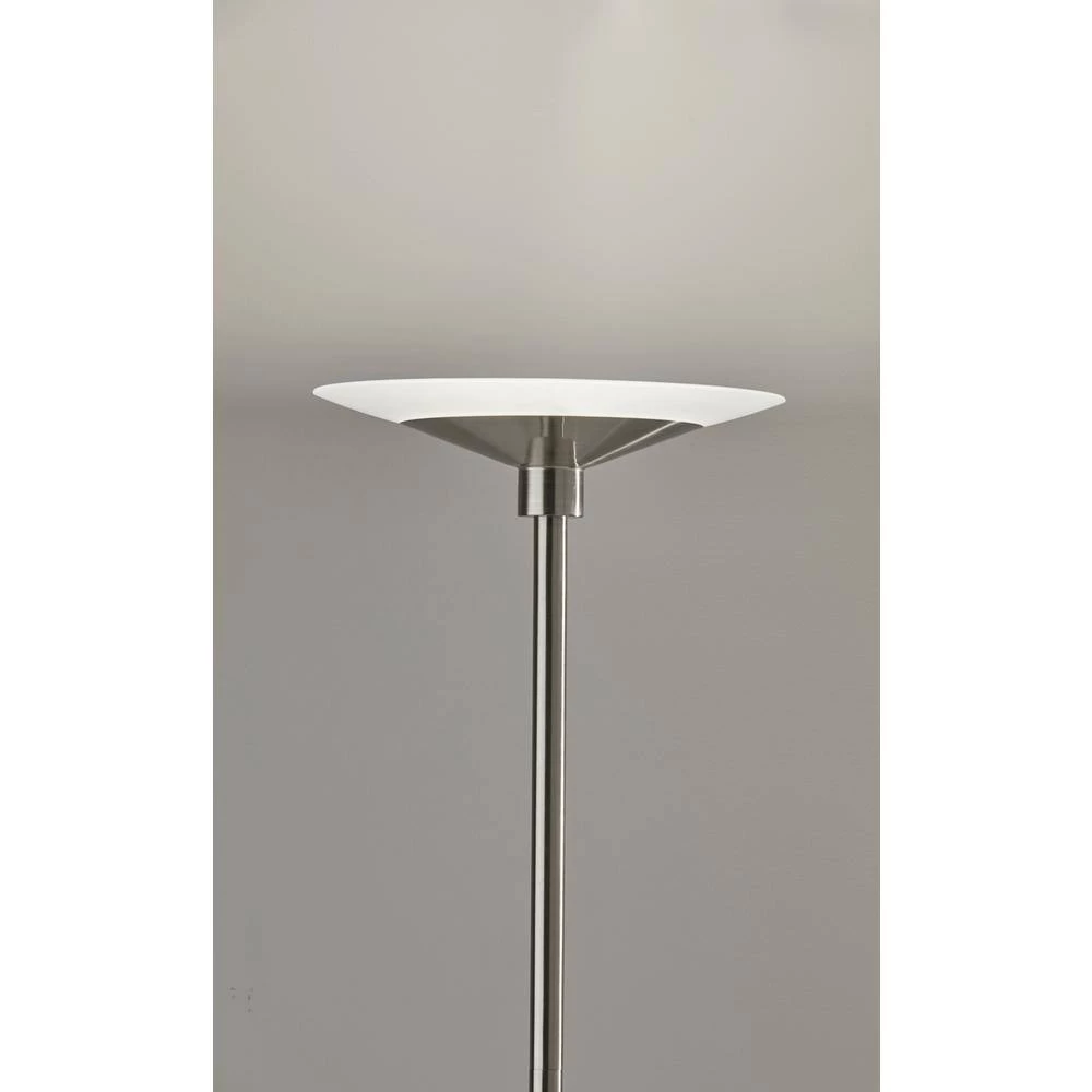 A sleek, modern style, the Solar LED Torchiere supports wellness by syncing your indoor lighting up with your circadian rhythm. By adjusting your lamp’s color temperature throughout the day you can simulate the natural progression of the sun, helping to regulate the body’s internal clock to improve sleep habits and overall personal health. The color of the light is controlled by a sleek touch switch located on the pole, which is also used to adjust the light intensity offering a full range of brightness options. With a brushed steel finish and a frosted glass shade, the Cosmo LED Torchiere is a modern, versatile look that will fit in and elevate any home style. Place this lamp in your living room or bedroom to fill the room with 2200 Lumens of bright, ambient lighting. All Adesso lighting product is either UL or ETL listed, meaning that it has been tested and approved to meet the government-regulated safety standards.