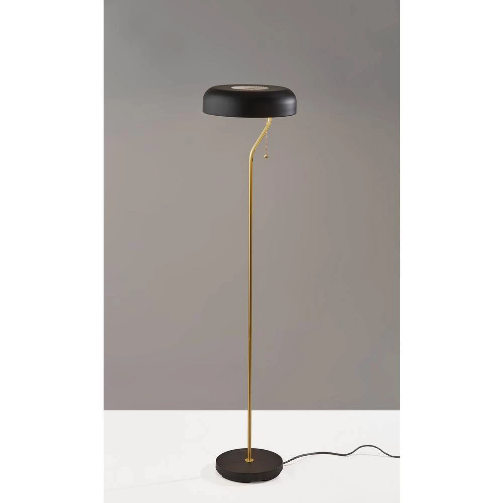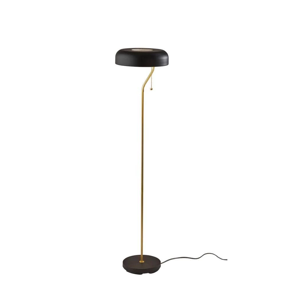 A style statement that brings the perfect amount of warm, ambient lighting to your bedroom or living room, the Timothy Floor Lamp will not disappoint. Black and antique brass metals are mixed to create a classic mid-century modern look. A black metal dome shade has decorative slanted perforation on top in order to distribute the light up and down. Simply use the pull chain switch to turn the lamp on and off. A black and white fabric covered cord offers a pop of pattern to the design.