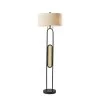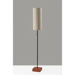 Illuminate your space in a stylish blend of neutral colors with the 62 in. tall Trudy floor lamp. This modern lamp artfully mixes materials and shapes, with a cube-shaped base in a warm walnut finish, a thin black stem and tall drum-shaped shade. The beige and brown textured fabric shade softly distills light from the 100-Watt bulb (not included). Operated by a black metal pull chain switch that matches the stem, the table lamp also features a 6 ft. brown cord. The Trudy floor lamp is also available with a blue textured fabric shade or a mustard yellow textured fabric shade.