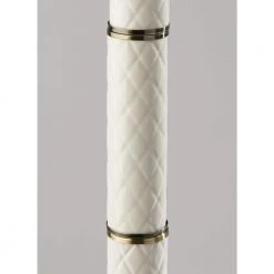 - 3 cylindrical, diamond-patterned, cream ceramic accent pieces create a distinctive style