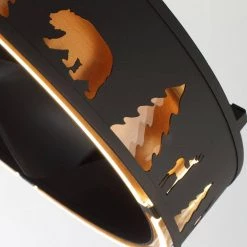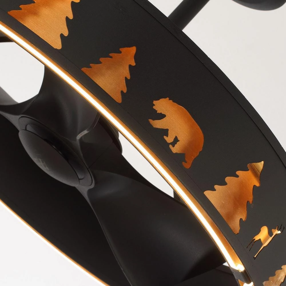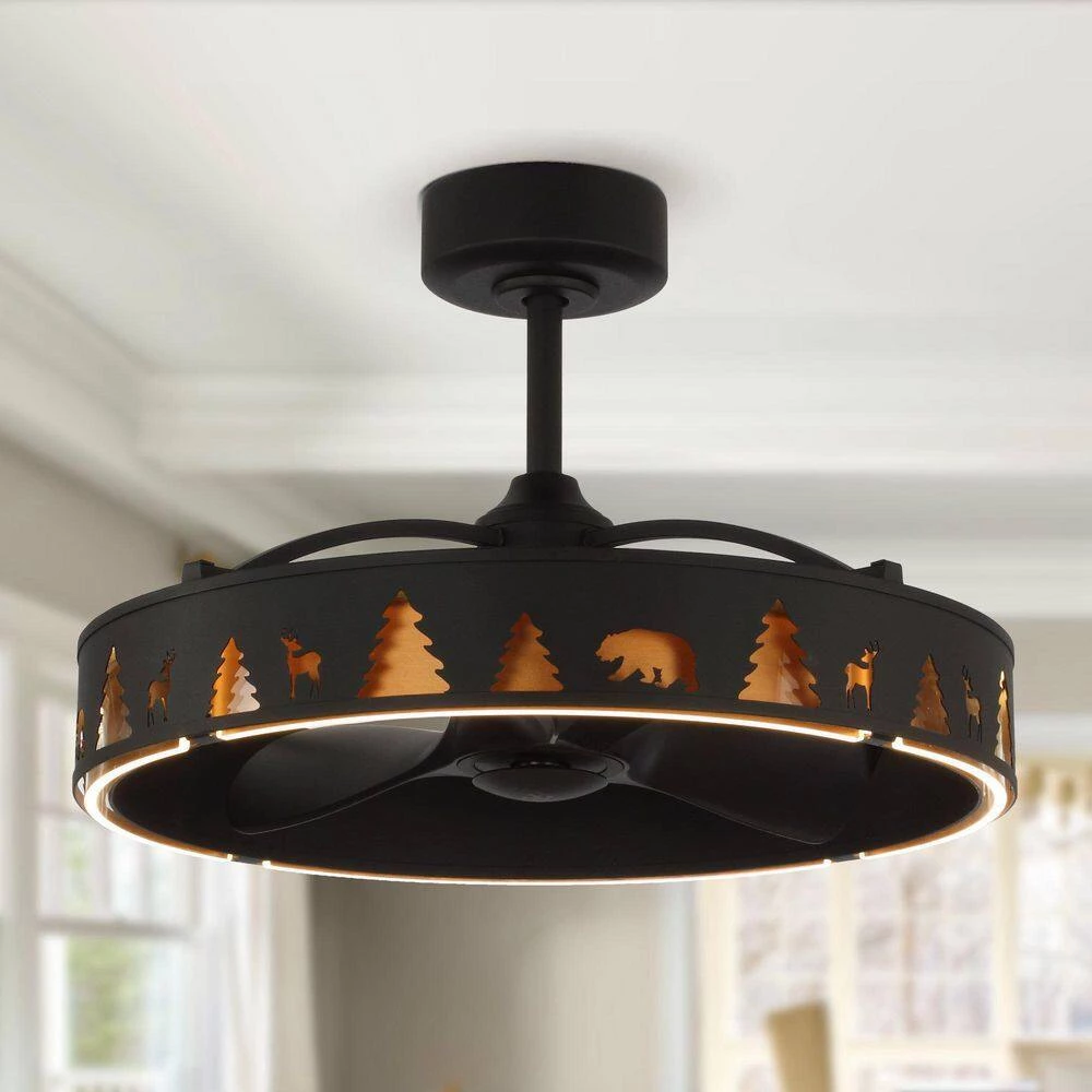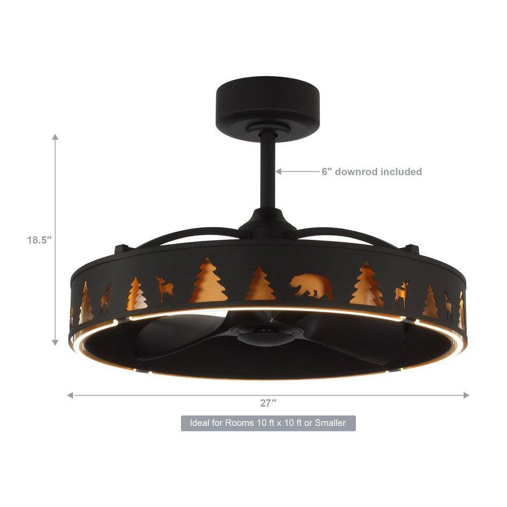 This indoor 27 in. caged ceiling fan offers a classic feel to your home with its matte black finish and 3 pieces acrylic blades. The LED light built-in the double shades included adding the finishing touch, and the outer lampshade is engraved with unique shapes, Christmas tree, elk, and bear. When the 3000K LED light is turned on, it will show a unique warm orange shape, add a fairy tale or soft holiday atmosphere to your daily furniture.