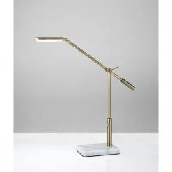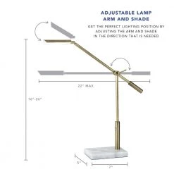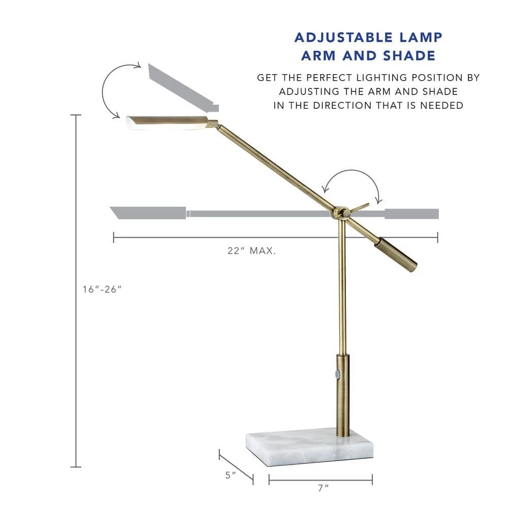 Comprised of antique brass and white marble. The Vera LED Desk Lamp reveals a striking mix of industrial and elegant designs. 500 Lumens of strong, energy efficient LED task lighting can be dimmed using a touch dimmer switch.
