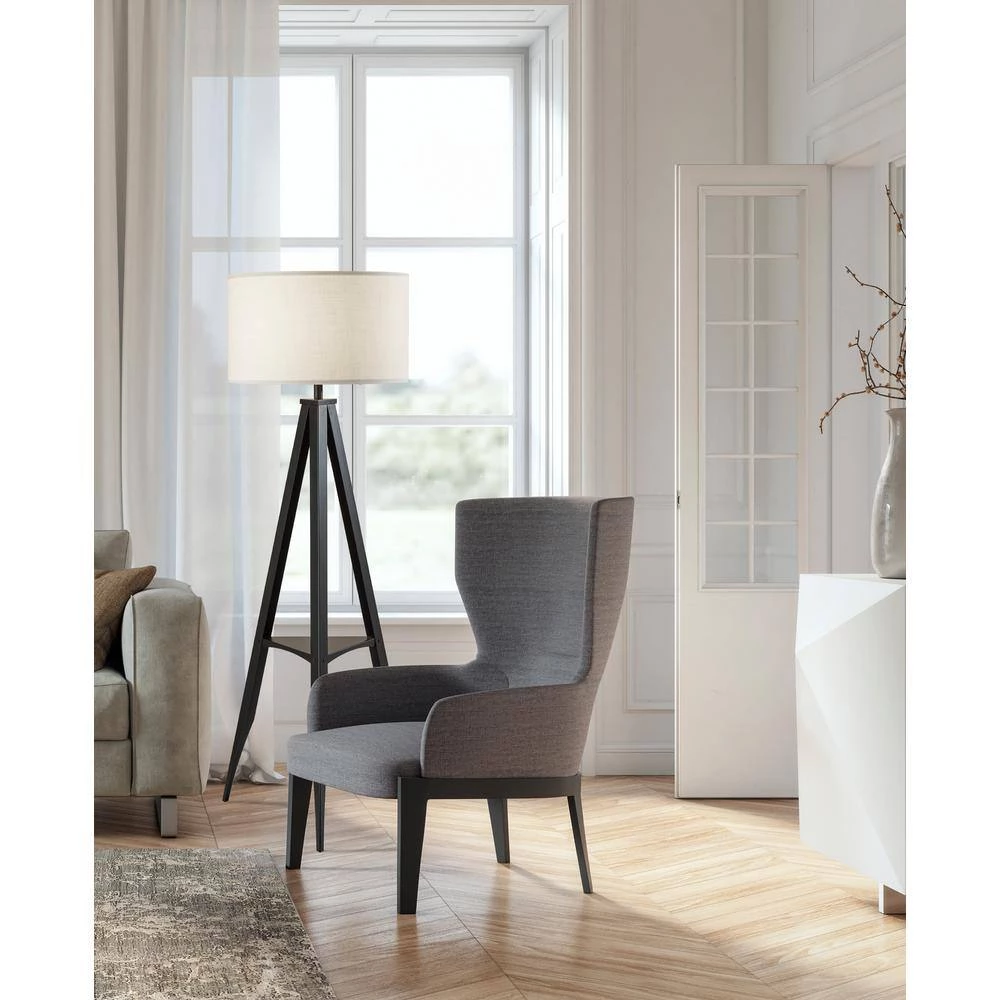 - Tripod-shaped base and drum shade add a striking, contemporary look