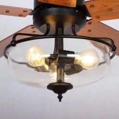 - 2 differnet brown finish blades of this ceiling fan create a rustic appearance and the glass shade adds an upscale look