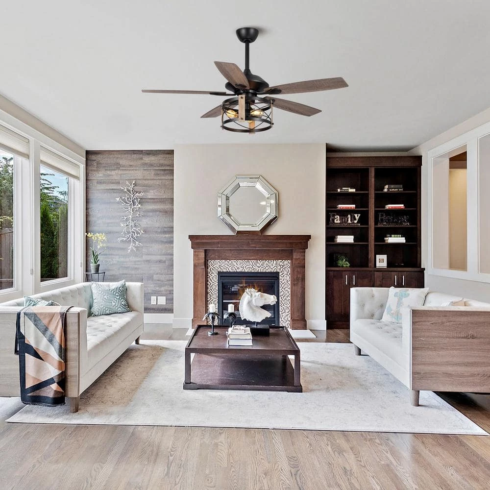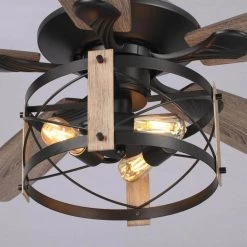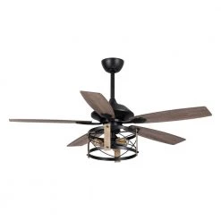 Add industrial style to your home with this 52 in. ceiling fan, which offers up a metal line iron frame lamps to protect the exposed light sources. And the black finish cage-inspired shade with wood frame highlights its exposed bulbs for factory-chic flair. Both functions of modern lamps and fans, makes it very ideal to use in the living room, bedroom and anywhere else.