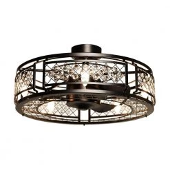 This shiny crystal downrod mount design, the outer metal shade uses a honeycomb style grid for great design and structural integrity. The 5-lights provide ample illumination and 6-speed reversible functionality that lets you find the right cooling comfort. Remote Controlled for additional convenience.
