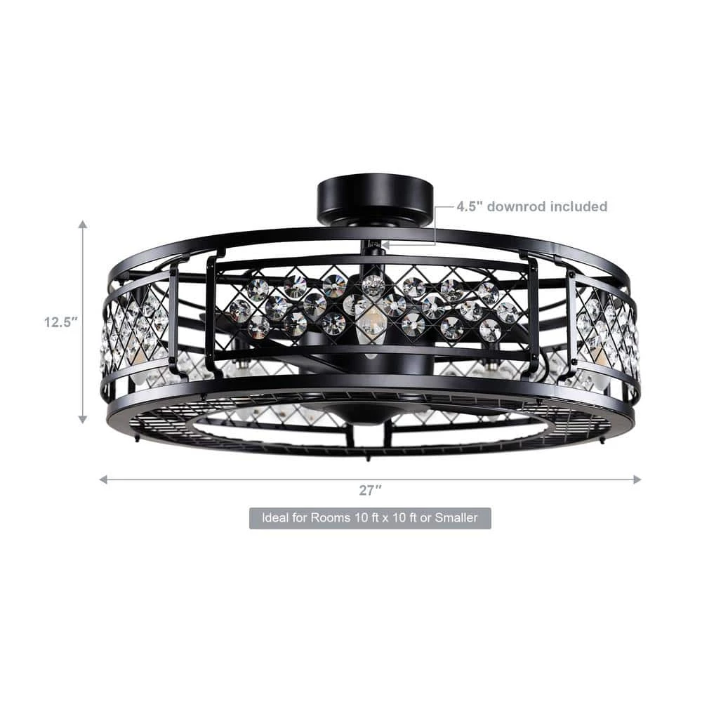 - Black frame and crystal decoration make the fan look more elegant