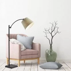 The York floor lamp brings highly adjustable lighting and a classic look that is perfect for living rooms, offices, bedrooms and more. The beige textured fabric shade is drum shaped and features an adjustable head that pivots up or down, allowing you to direct the light wherever it’s needed. The shade is attached to an antique bronze arm that is also adjustable, letting you customize the total lamp height anywhere from 56 in. to 66 in. with a base and pole of antique bronze, this floor lamp is the perfect complement to any decor. Operated by a rotary switch located on the pole to easily turn it on or off, the York floor lamp powers a 100-Watt Type A bulb (not included) for an ideal level of brightness and features a 6 ft. black cord.